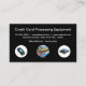 Visitenkarten für einen Anbieter von Kreditkartenverarbeitungs-Ausrüstung und Maschinen, die mit Kreditkartendesign-Emblemen in einer Online-Vorlage können Sie anpassen.