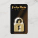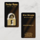 © Sunny Mars Designs. Diese Visitenkarten sind mit einem leuchtenden goldenen Schloss und einem Symbol eines Hauses versehen. Ideal für Sicherheitsfirmen und Schlossmiede