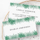 Eine moderne, minimale Visitenkarte mit Palmen-Blätter und Monstera-Blätter, die als grüner Rand oben und unten auf der Vorderseite angeordnet sind. Ihr Name ist in der Mitte in dunkelgrau gedruckt. Anpassbare Vorlagenfelder für Name, Titel und Kontaktinformationen auf der Rückseite. Dieses Design-Visitenkarten-Template ist perfekt für Innenarchitekten, Schönheitssalons, Dekorateure, Resorts, Blogger, Gartendesigner, Gärtner, Floristen etc.