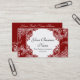 FARBpalette: Moosbeerbeerenrot und -WEISS. ENTWURFS-SAMMLUNG: Diese bringen Geschäfts-Telefonkarten zusammen, die leicht unter Verwendung der Schablonenfelder mit Ihrer persönlichen Information besonders angefertigt werden. Dieses ist eine wirklich elegante und hoch entwickelte weibliche orientierte Geschäftssammlung mit einem formalen modernen Vintagen Flair! Gezeigt hier im Weiß auf Schwarzem, haben die Karten einen eleganten drastischen Auftritt. Für eine schöne Vollenden-Touch wählen Sie die zusammenpassenden Briefpapiereinzelteile des gleichen Entwurfs vor. Dieses ist die Grafik, die von Audrey Jeanne Roberts entworfen ist, das von den dekorativen Verzierungselementen des antiken Vintagen geätzten barocken Artdruckers hergestellt wird, die in ein Damastmuster geschaffen worden sind. Die geätzten Muster haben Blätter und Blumenelemente sowie Acanthus-Blätter in einer halb Sternkreisform. Das Über aller Entwurf hat eine sehr viktorianische Ära oder französisches ein Eleganzgefühl zu ihm mit einer zeitgenössischen Drehung. Wenn es ein Produkt gibt, möchten Sie geschaffen haben, das gerade Mitteilung uns nicht angeboten wird!