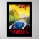Vintage französischsprachige Art-Deco-Reiseplakate, die Griechenland als Reiseziel mit dem Auto bekannt machen.