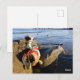 Vissende Fubby op een blikje aan de waterkant. Postkarte