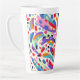Es handelt sich um ein abstraktes, spielerisches, farbenfrohes Design mit lebhaften Farbtönen in tierähnlichen Mustern (Tiger oder Leopard).