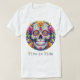 Das Bild ist farbenfroh und lebendig mit einem Zuckerschädel, der mit Blume und Schmetterlingen geschmückt ist. Der Text "Viva La Vida" ist in einem spielerischen Schriftart geschrieben, der dem Design eine Touch von Launen hinzufügt. Der Effekt ist ein kraftvolles und rebellisches Aussehen, perfekt für jeden, der Piraten, Abenteuer und das Meer Lieben.
