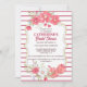 Schöne, weiche, tiefrosa Wiese Blume mit Pflanzen sind Set gegen eine weiße Jakobsform Inlay mit Imitaten Gold. Das Design Erholungen auf einem viva magenta bunt und weiß gestreiften horizontalen Hintergrund und ist ideal für ein "magenta, weiß und gold" oder "Country floral themed" Brautparty, besondere Geburtstagsfeier oder Hochzeit. Personalisieren Sie die Formulierung, um sicherzustellen, dass sie Ihre besondere Feier Anzug.