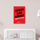 Das ist ein spanischsprachiges Design, das für ein globales Publikum gedacht ist. Dank unserer weltweiten Vertrautheit mit den Ausdrücken "Viva la Revolución" und "Vive la France" ist die Bedeutung von "Vivan los Niños" - mit all seinem revolutionären Hauch - nicht schwer zu entschlüsseln: Lang lebe die Kinder! Aber selbst wenn die Nachricht bei der Übersetzung verloren geht, bleibt die Abort73 URL - die wichtigste Komponente in allen unseren Designs - fest intakt.