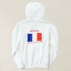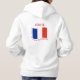 Dieses hochwertige Kleidungsstück hat eine Grafik auf der Vorderseite der französischen Flagge mit den Worten 'Vive la France' unten und 'Vive la' und 'Liberté auf beiden Seiten, mit einem Platz für Ihren Namen oben. Auf der Rückseite befindet sich die französische Flagge mit der "Vive la France" unten und ein Ort für Ihren Namen oben. Alle Wörter können in den Anzug Ihrer eigenen Anforderungen geändert werden, außer 'Vive la France' auf der Vorderseite, die Teil der Flaggengrafik ist.