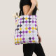 Dieses Bild weist ein sich wiederholendes geometrisches Muster auf, das aus farbenfrohen Diamantformen besteht, die in einem Raster angeordnet sind. Die Diamanten wechseln sich zwischen hellgelb, tief lila, lavender und dunkelgrau ab, die durch weiße Bereiche getrennt sind. Dadurch entsteht eine lebendige und ausgewogene Anordnung, die sowohl an klassische Raute als auch an verspielte Rätsel erinnert. Die Farben sind gleichmäßig verteilt und sorgen für eine beeindruckende und moderne visuelle Wirkung.
