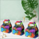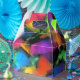 Abstrakt in lebhaften Gelb-, Grün-, Rosa-, lila-, Blau-, Türkis-, Orange-, Schwarz- und Rosatönen schmücken diese lustigen Gaumenkästen.