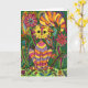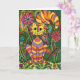 Diese farbenfrohe gestreifte Katze mit farbenprächtigen, hochdetaillierten Markierungen sitzt im Schatten eines dichten, lebendigen Gartens, der von exotischen, ornatal gemusterten Pflanze und Blume in diesem einzigartigen und aufregenden Design wimmelt.