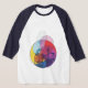 T-shirt presents a simple yet striking abstract beauty. This design features an abstract composition of translucent, organic shapes in varying sizes, harmoniously layered over one another. The vibrant blend of reds, blues, sky blues, purples, orange, yellow and pink creates a lively and dimensional pattern.