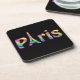 Ein Design, das so lustig ist wie Paris selbst. Der Text Paris in einer lebhaften Farbenreihe mit dem "A" in Paris und der Kontur des Eiffelturms.