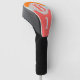 Schützen und identifizieren Sie Ihre Lieblings-Fahrer mit lebendigen orangen, rosa und grauen Polka-Punkten, die eine runde silberne wie eine borderierte Medaille für Ihr individuelles Monogramm bilden. Trendy Mode auf den Golfplätzen mit einer Zahl, die personalisiert sein kann.