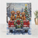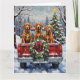 Bring warmth to the holiday season with this beautiful Vizsla Christmas design! This vibrant scene features three loyal, russet-colored Vizslas sitting attentively in the back of a classic red pickup truck, parked in a serene snowy winter forest. The vintage truck is charmingly decorated with a festive Christmas wreath, adorned with sparkling red and gold ornaments and warm, glowing lights. Soft snowflakes drift down, enhancing the winter wonderland effect. A decorated Christmas tree in the background completes this heartwarming picture, making it an ideal Christmas gift for any Vizsla owner, dog lover, or enthusiast of festive and elegant dog breeds. This artwork perfectly captures the joyful spirit of the holidays.