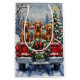 Bring warmth to the holiday season with this beautiful Vizsla Christmas design! This vibrant scene features three loyal, russet-colored Vizslas sitting attentively in the back of a classic red pickup truck, parked in a serene snowy winter forest. The vintage truck is charmingly decorated with a festive Christmas wreath, adorned with sparkling red and gold ornaments and warm, glowing lights. Soft snowflakes drift down, enhancing the winter wonderland effect. A decorated Christmas tree in the background completes this heartwarming picture, making it an ideal Christmas gift for any Vizsla owner, dog lover, or enthusiast of festive and elegant dog breeds. This artwork perfectly captures the joyful spirit of the holidays.