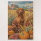Feiern Sie die Schönheit des Herbstes mit diesem lebendigen Gemälde eines Hundes, der neben einer reichen Erntedank-Ernte sitzt. Die reichen Herbstfarben von Kürbissen, Sonnenblumen und die rustikale Landschaft der Bauernhäuser schaffen eine warme und einladende Atmosphäre, die sich perfekt für jeden Hundefreund im saisonalen Dekor eignet.