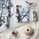 Vögel auf Zweigen ist eine originelle Fotografie-Montage von Vögeln in einem Kirschbaum. Die Vogelbilder wurden zu verschiedenen Zeiten aufgenommen und dann in die kühnen abstrakten Baumzweige komponiert. Die schöne Silhouette gegen einen wolkenverhangenen Himmel schafft ein dynamisches Papier-Design.