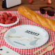 Vögel, die Niedliches Kind tragen. Es ist eine jun Pappteller