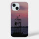 Diese Wasservögel genießen das warme Glühen eines Sonnenuntergangs, der auf einem Schifffahrtsschiff auf einer Felsmole im Hafen von Patchogue steht.