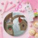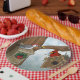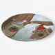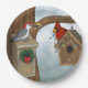 Diese hübsche Winterszene zeigt die mit Federn versehenen Nachbarn, die im Geist der Jahreszeit teilen. Der Specht bietet einen Sonnenblumensamen seinem Kardinalsfreund an, der sein Vogelhaus verziert. Karo, der heraus Ausschnittbretter, -Tischsets und -servietten für Ihre Feiertags-Unterhaltung koordiniert.