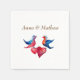Farbenfrohe, schöne Vögel und Herz-Illustration , personalisierte Papierservietten.Einfach Ihren Namen und Ihre Hintergrundfarbe hinzufügen.