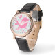 Uhr, Klassische Damenuhr mit schwarzen Lederarmband