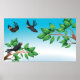 Drei schöne Vögel, die um einen Baum fliegen. Dieses Design sieht auf diesem Poster wirklich effektiv aus