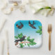 Drei schöne Vögel, die um einen Baum fliegen. Dieses Design wirkt auf diesen Paper-Tellern sehr effektiv