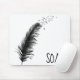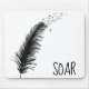 Vogelschimmer aus schwarzer Feder auf weißem Hintergrund in den Himmel.