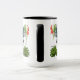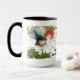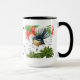Eine Kaffee-Tasse mit einem Nordinselkartenhintergrund, unser gebürtiger Fantailvogel und gebürtiges Kaka Beak Blume auf ihr.