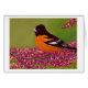 Lieblicher Vogel auf einem Zweig eines blühenden Baumes.