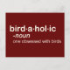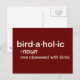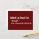 Dieses lustige Vogelbeobachter-Design ist als Definition formatiert, die im Wörterbuch zu finden wäre. Hier ist das Wort birdaholisch und die Definition ist "von Vögeln besessen". Vielleicht kennen Sie so ein paar Vogelbeobachter, oder vielleicht sind Sie selbst ein Birdaholic! Sie können dieses Geschenk völlig anpassen! Text hinzufügen, Farbe ändern, Design verschieben, einen anderen Stil wählen - machen Sie es zu Ihrem eigenen!