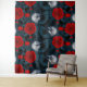 Vögel und Blume aus Roter Pest mit blauen Blätter Wandteppich