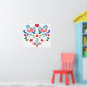 Es ist ein helles Design, illustriert in der Tradition des skandinavischen Rosmings mit Vögeln, Herzen, Blume und Schnörkeln. Es ist perfekt für die Platzierung auf einem Plakat, einer Kachel oder für andere Zwecke.
