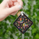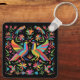 Dies ist ein einzigartiger "One of a Kind" Bird and Blume mexikanischer Otomi-Schlüsselanhänger! Das mexikanische Otomi Print mit Vögeln und Blume in farbenfrohen, hellen Farben...auf einem schwarzen Hintergrund! Grafikdesign von Artist Kerry Miller