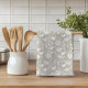 Das hellbeige Teetuch mit einem zarten Cremvogel und Blume-Design.