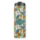 Vogel und exotisches Monogramm des Blumen-Muster-| Thermosbecher