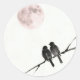 Weiche, runde Aufkleber mit einer japanischen Sumi-e-Tuscheillustration von zwei Vögeln, die zusammen unter einem sanften, rosafarbenen Mond ruhen. Minimalistische schwarze Pinselstriche auf einem sauberen weißen Hintergrund erzeugen eine ruhige, luftige Ästhetik, die nachdenklich und raffiniert wirkt. Perfekt zum Verschließen von Umschlägen, zum Dekorieren von Geschenkpapier oder -tüten und zum Hinzufügen einer stillen, bedeutungsvollen Note zu besonderen Momenten. Ideal für Liebhaber von Schreibwaren, sanfte Geschenke und alle, die sich von friedlichen, poetischen Designs angezogen fühlen.