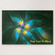 Ein buntes Fraktal, das einem Dschungelvogel ähnelt. Die Primärfarbe ist grün; Blau und Gelb sind ebenfalls hervorgehoben. Passen Sie Ihren eigenen Text an.