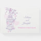 Das Gästebuch mit zwei Liebesvögeln zeigt eine künstlerische Darstellung des offenen Vogelkäfig, der von einem blühenden Frühlingsbaum mit Herz gezeichnet wird. Passen Sie sich mit Ihren eigenen Paarnamen an. Ideal, um in einem Empfang verlassen, um Ratschläge zu erteilen, ein tolles Memento aus Ehe. Einzigartige Kunst und Design von Sarah Trett. www.sarahtrett.com für www.mylittleedenweddings.com