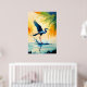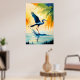 Vogelmalerei mit trifarbenem Heronfisch im Sumpf Poster