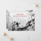 Elegantes, skurriles, farbenfrohes Blumendesign mit einem niedlichen Federvogel an den Zweigen eines blühenden Baumes, Blüten, Blüten in roten, schwarzen, weißen Farbtönen, die mit digitaler Wiedererarbeitung einer antiken orientalischen Miniatur geschaffen wurden.