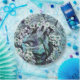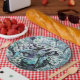 VOGELNEST UNTER FRÜHBLUMEN, weiß, blau Aquamarin Pappteller