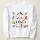 Eine ganze Schar der schönen, vibrierenden Singvögel umfassen die Front dieses Sweatshirts, das perfekte Kleid für Vogelenthusiasten!