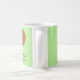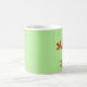 Eine positive Bekräftigung, die Größe erklärt, diese Tasse Staaten "Ich erwarte von großartigen Dingen jeden Tag!" geschrieben in lustig braunem Schriftart. Die Tasse weist einen großen braunen Vogel direkt über der Aussage auf. Der Hintergrund ist grün. Clipart: www.laboutiquedeicolori.com