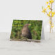 Eine Geburtstagskarte mit einem weiblichen Black Bird behaltend Blick auf die füttre-Zeit für die Jungen.