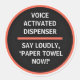 "Sprachaktivierter Dispenser - sagen Sie laut 'Papierhandtuch jetzt!'"-Aufkleber