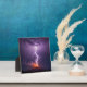 Witness the raw power of nature in this electrifying scene! A majestic volcano erupts with glowing molten lava flowing down its slopes, while a blinding white lightning bolt tears through a turbulent purple storm sky. The intense contrast of fiery orange-red lava against deep violet clouds and crackling electric white creates a breathtaking, apocalyptic mood.