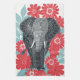 Volkskranker Elefant und Blume, ursprünglich in Tinte gezeichnet. Erhältlich in Blau, Orange, Rosa und Rot.