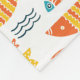 Dieses Volkskunst-Ausrüstungsbeschreibungen ein Muster der orange, gelben und aquamarinen Schwimmenfische.